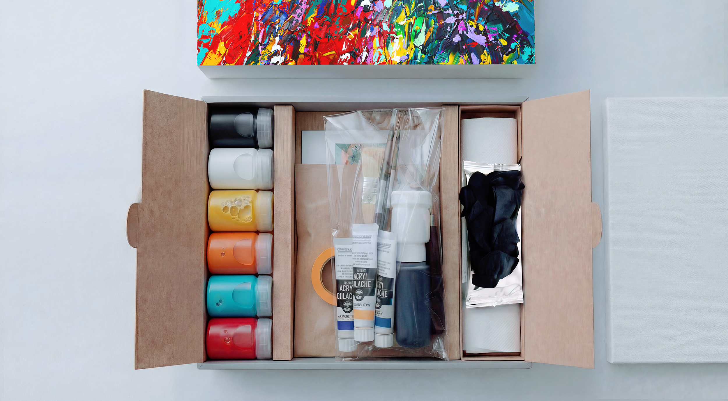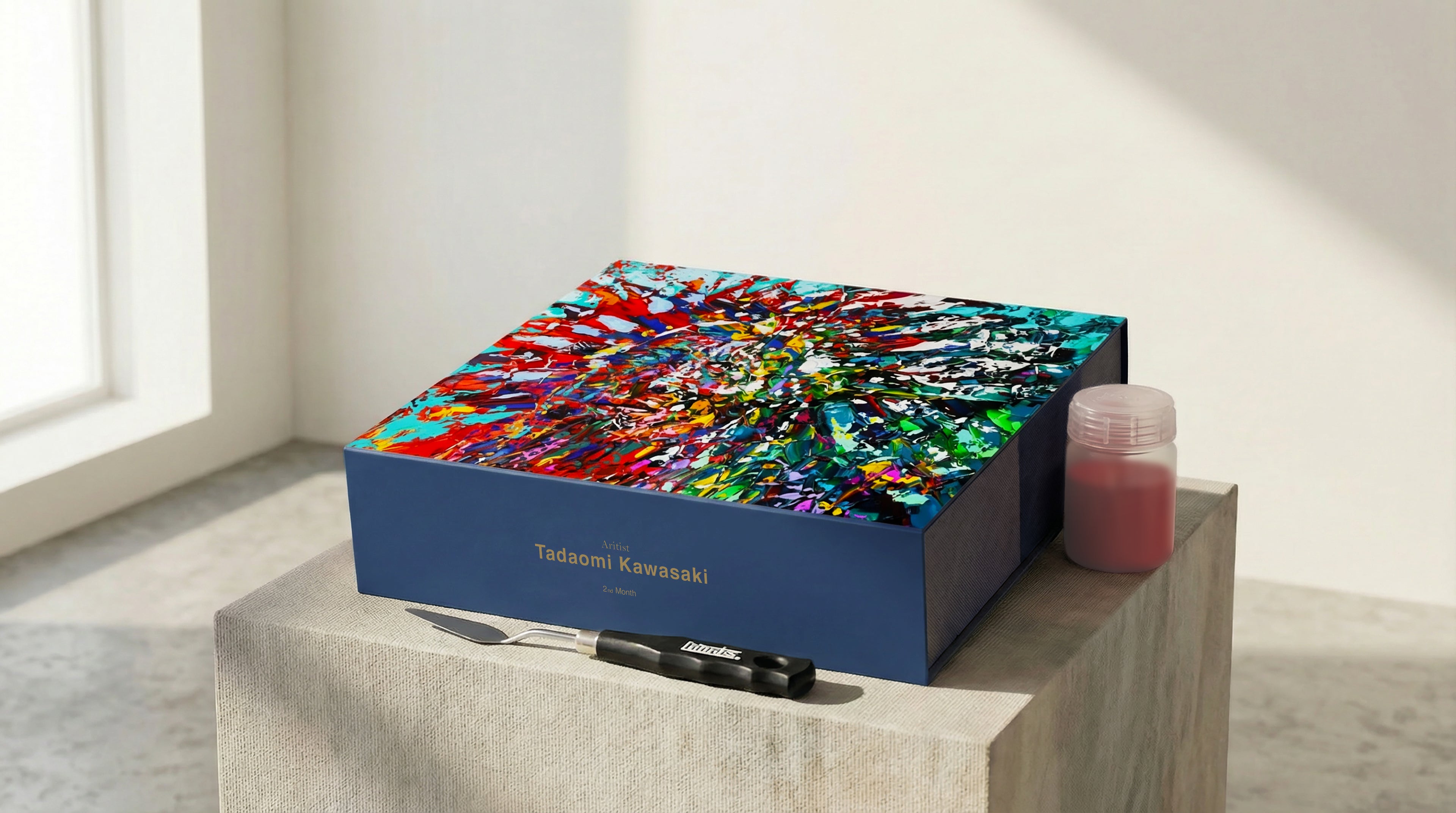 今月のテーマに合わせてアーティストが選んだ画材。自分では選ばないものと出会うことが、表現の幅を広げます。
