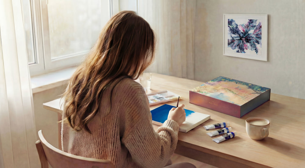 フォトフレームが同梱されます。水彩画のような耐水紙の作品を製作後お部屋に飾れます。